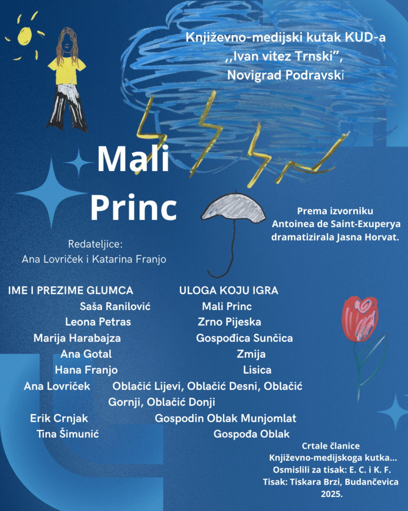 Pozivamo Vas u petak 10. listopada 2025. u 18 sati u Vatrogasni dom (Novigrad Podravski) na našu izvedbu predstave ,,Mali Princ”! Poslije predstave planiramo razgovor i druženje glumaca s publikom…
