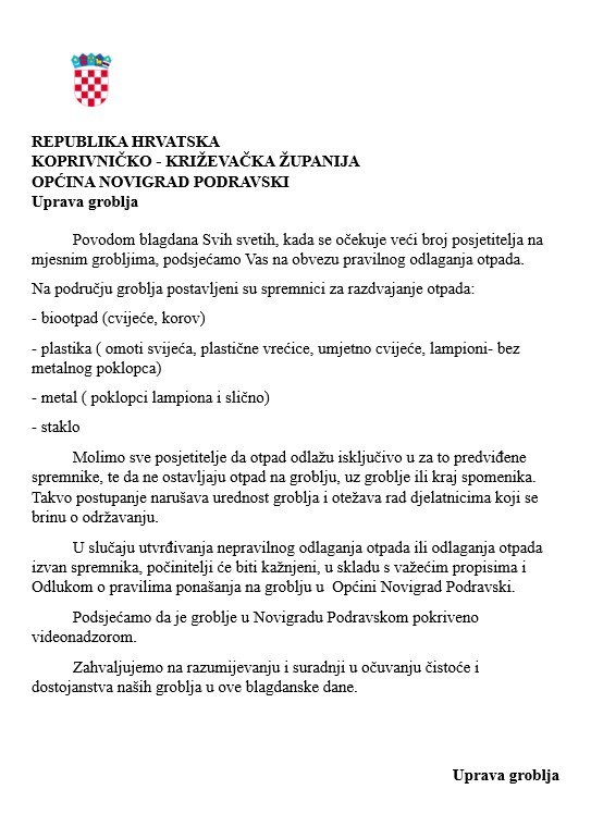 Obavijest o pravilnom odlaganju otpada na grobljima na području Općine Novigrad Podravski 29 listopada, 2025