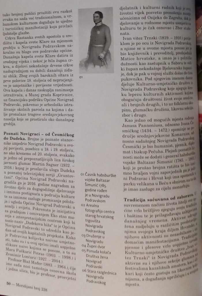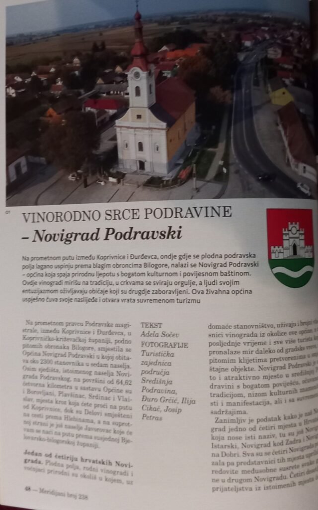 U najnovijem broju uglednog geografskog časopisa Meridijani objavljen je članak posvećen Novigradu Podravskom. Članak donosi prikaz povijesti, kulturne baštine i posebnosti našega mjesta, a posebno naglašava ljepote podravskog kraja i vrijednost lokalne zajednice.