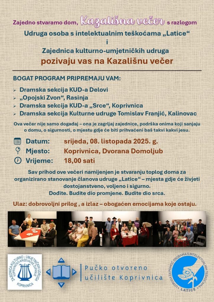 Poziv na Kazališnu večer u Koprivnici – nastupa KUD “Delovi”