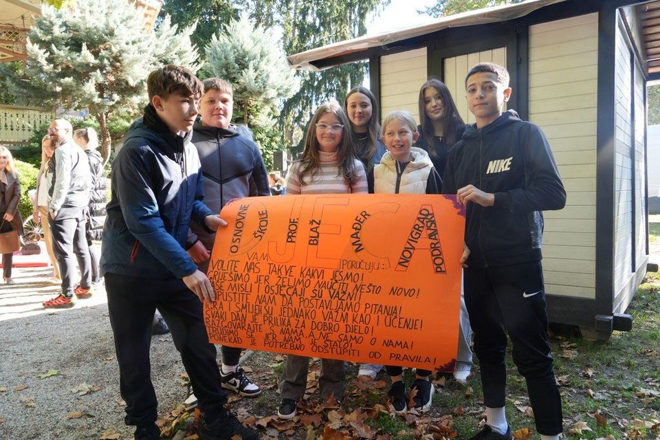 Zbog nemogućnosti sudjelovanja predstavnika područne škole Delovi, išla je učenica 8. razreda koja je aktivno sudjelovala u nastanku radova. Učenici su prisustvovali tradicionalnom javnom okupljanju djece i druženju sa županom.