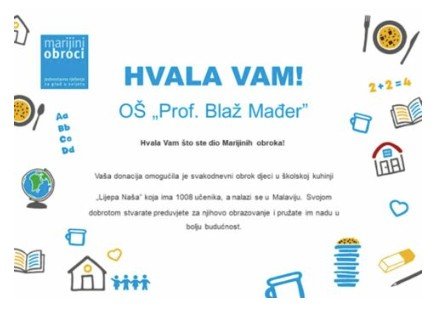 Svima vama koji ste dali svoj prilog HVALA na dobroti, velikodušnosti i naporima koje činite za djecu kojima je Marijin obrok nada za bolju budućnost i razvoj njihovih zajednica.